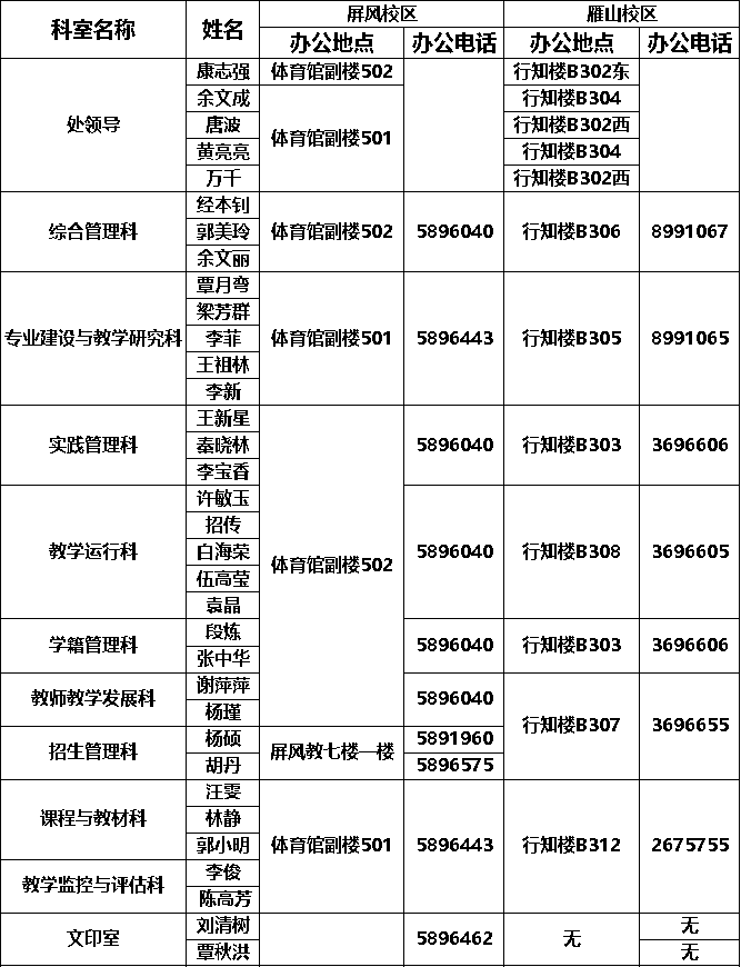 教务处机构设置